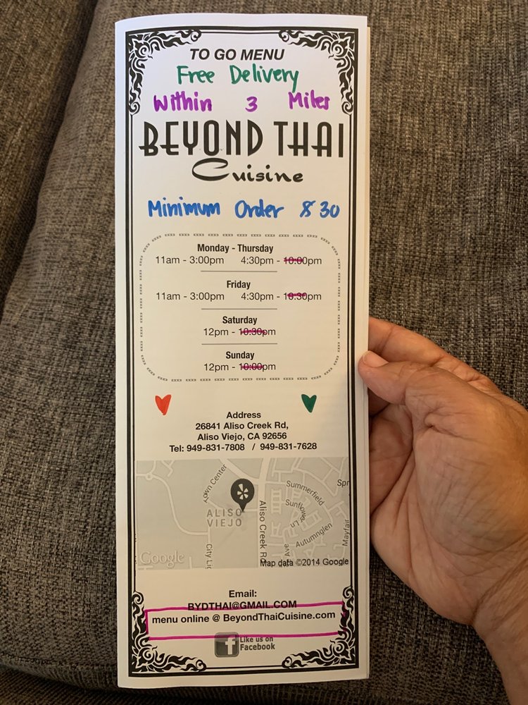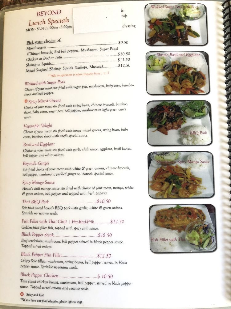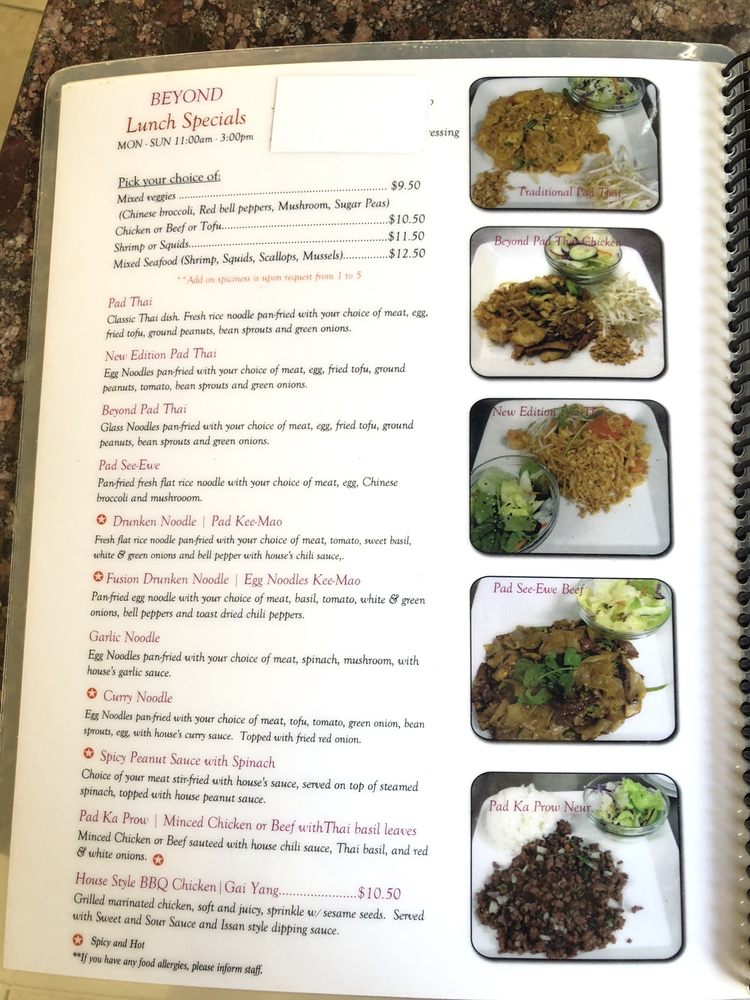 Step into a modern Thai oasis at Beyond Thai Cuisine in Aliso Viejo, CA. This Asian-owned restaurant offers a variety of vegan and vegetarian options, making it a go-to spot for those with dietary restrictions. The ambiance is sleek and elegant, a refreshing take on traditional Thai decor. The menu boasts flavorful dishes such as the perfectly seasoned pad Thai, tasty Tomyum soup, and creamy Yellow Curry. Beyond Thai Cuisine showcases creativity with dishes like the Golden Tofu and unique beef Pad See Ew. Customers rave about the generous portions and friendly service. Whether you're dining in or taking out, this spot is a must-try for those craving authentic Thai cuisine with a modern twist.